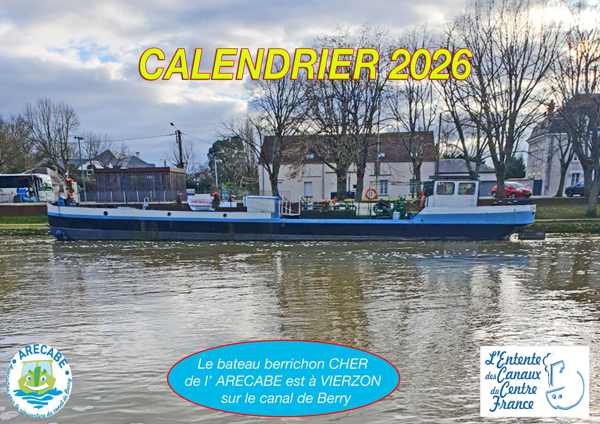 Le calendrier ARECABE 2026 est édité. De Format A4, relié par peigne métal blanc, 12 photos du canal de Berry, couleurs ou noir et blanc défilent sous vos yeux au fil des mois...